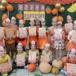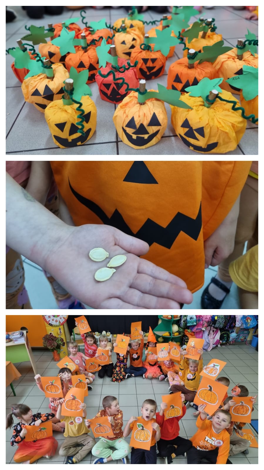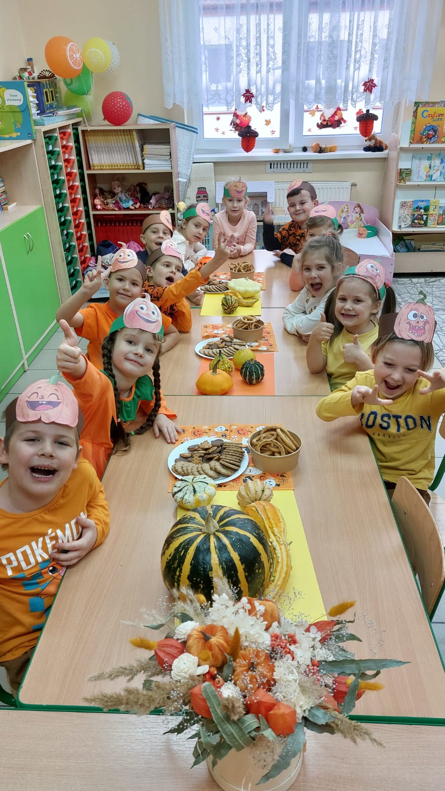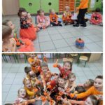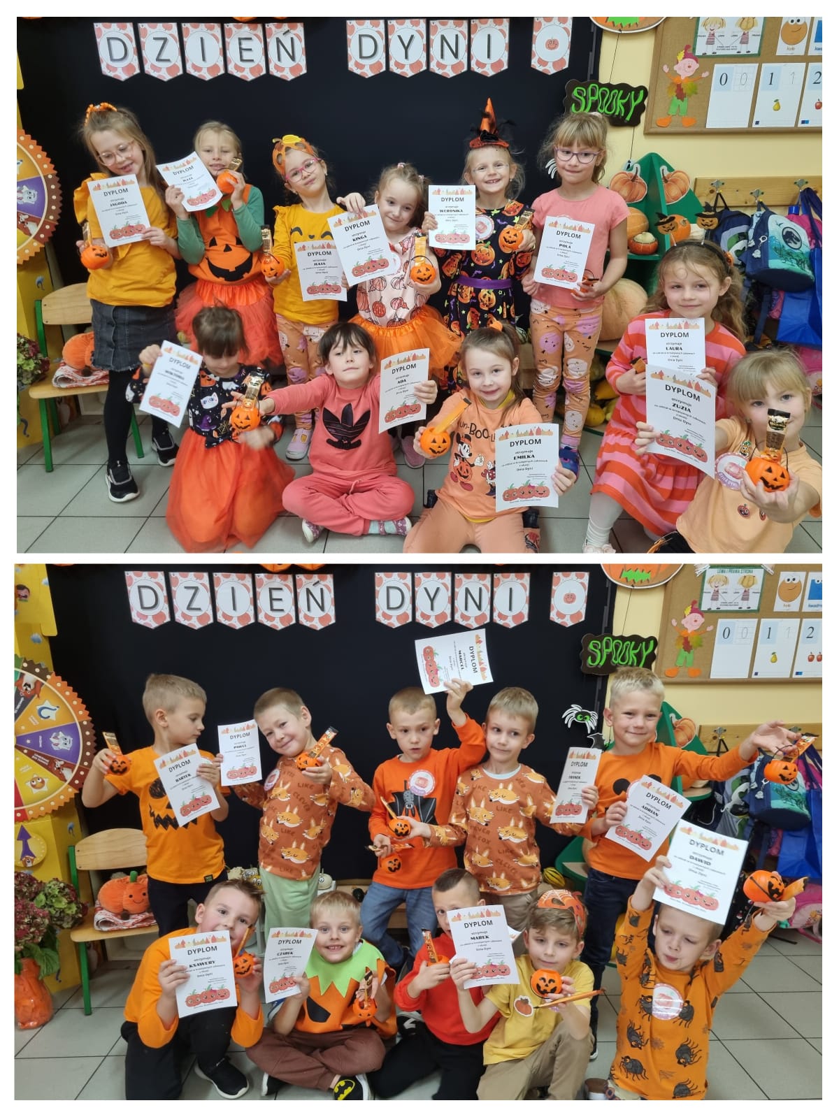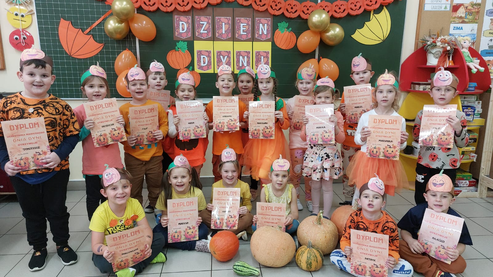 30 października w naszych zerówkach zrobiło się naprawdę pomarańczowo! Obchodziliśmy wyjątkowe święto – DZIEŃ DYNI. Od samego rana w udekorowanych salach królowały dynie, a wśród nich brylowali nasi uśmiechnięci zerówkowicze, ubrani w stroje nawiązujące do barw jesieni i dyń. Podczas zajęć uczniowie poznali ciekawostki o dyni – dowiedzieli się jak i gdzie rośnie dynia, do czego można ją wykorzystać, poznały jej rodzaje, strukturę i budowę. Wzięli udział w zabawach ruchowych: toczenie dyni, rzuty dynią do celu, zadania ruchowe oraz w zajęciach edukacyjnych i grafomotorycznych, a także w warsztatach plastycznych, na łamach których powstały dyniowe arcydzieła. Miały okazję również prezentacji swojego aktorskiego talentu, tworząc wesoły, dyniowy teatrzyk. Wszędzie można było poczuć jesienny klimat i radosną atmosferę wspólnej zabawy. Dzień Dyni był okazją, by w kreatywny sposób utrwalić wiadomości o jesieni i okazją do budowania ciekawych, miłych wspomnień z tego pięknego okresu szkolnego, kończącego okres przedszkolny.